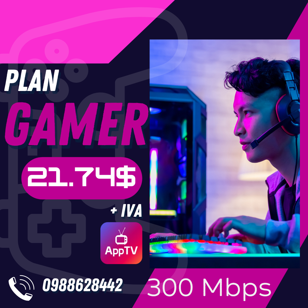¡Conquista el mundo virtual con nuestro servicio de internet Plan Gamer! Disfruta de 300 megas de velocidad ultra rápida para jugar sin límites, sin lag y sin interrupciones. ¡Vive la experiencia gaming al máximo y alcanza la victoria con nosotros!🎮🌐💪